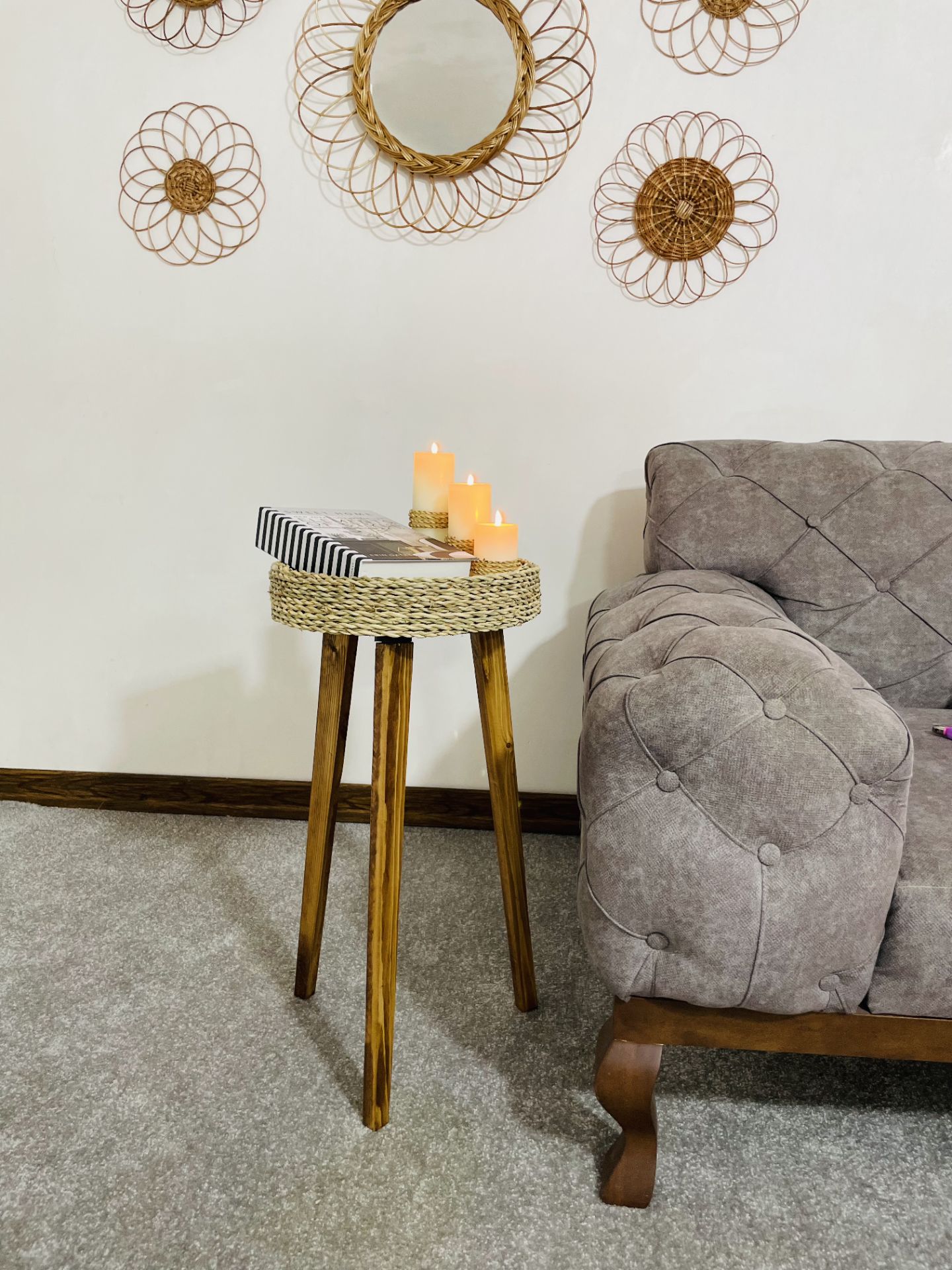 میز دکوری حصیری ارتفاع60(ارسال رایگان)