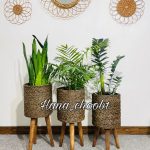 پایه گلدان حصیری مدل استوانه ایی ست سه عددی